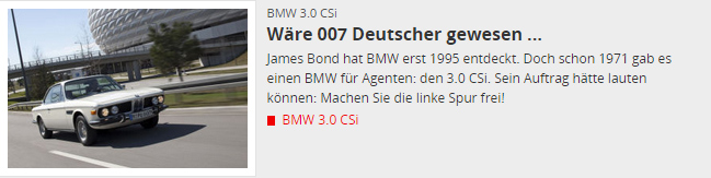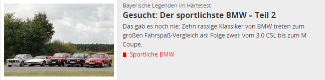 60er und 70er Jahre Vom 2000 CS bis zur Rennversion des 3.0 CSL - Motorvision stellt die faszinierenden BMW-Coupes der 60er und 70er Jahre vor. |