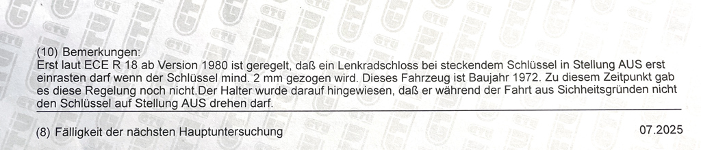 der Beanstandung des TÜV´s ging es darum das das Lenkradschloss
